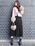 仲田桃子(MERCURYDUO)のブーツ「フェイクレザースクエアトゥストレッチショートブーツ」を使ったコーディネート