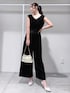 【ワンピース】 チュールフリル×サテンパンツのドッキングデザインロンパース🫧ハイウエスト切替でウエストのラインがすっきりみえるのでスタイルアップ効果抜群です✨165cmMサイズで足首が見えるくらいの丈感でした! 【バッグ】 柔らかい牛革のハンドバッグ👜マチもしっかりあるのでコンパクトですが収納力◎ 【シューズ】 シンプルなパンプスはビジューがクリップで取り外し可能!オンオフ両用できるデザインです👠クッションもしっかり入っていてフィット感あり、23.5cmで36サイズがぴったりでした!