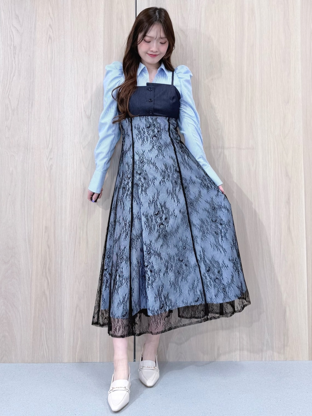 【ワンピース】 シャツ×キャミワンピのドッキング見えするデザインのワンピース👗トレンドのカジュアル感を程よく取り入れたデザインです✨高めのウエスト切替とすっきりしたラインでスタイルアップ効果抜群!165cmMサイズで足首上5cm程の丈感、裏地が短めなので実際の丈よりも少し短く感じました! 【シューズ】 春先に大活躍のミュールをローファーデザインに👡デニムにあわせてもワンピースに合わせても◎の万能アイテムです!23.5cmで36サイズがぴったりでした!