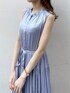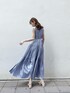 可愛らしい印象のあるティアードワンピースですが、サテン素材にすることでボリュームダウンされるので、大人の方にも試して頂きたいアイテムです。私は身長が160cmなのでウエストのブラウジングは行わずに着用していますが、小柄な方はウエストをご自身でブラウジング出来るのでどんな身長でも美しく着れる魔法のワンピースです♡トレンチコートやジャケットを羽織るスタイリングは勿論、シアーシャツを使ったコーデもオススメです。合わせたシャツは、ラメが入っていますが素肌の上から着てもチクチクせず、着心地も良いです◎膝上まである長め丈なので、ウエストからお尻にかけての気になるラインをカバー出来るのも嬉しいポイント!私はブルーの同系色で纏めて、爽やかでお出かけしたくなるような春コーデにしてみました♪