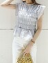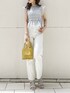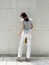 ブルー×ホワイトの爽やかコーデ。全体的に淡いトーンなので、イエローのバッグを差し色として加えました!【トップス】花柄、無地と2パターンの全7色展開です!花柄は私のスタッフコーデページに2コーデ載せているので、是非そちらをご覧下さい♡今回は無地を選んだのですが、淡いカラーでもぼんやりしないようにさりげなくチェック柄になっています。よく見ると分かる、というところが子供っぽくならないポイントです◎シャーリングが柔らかく、ボディラインを綺麗に見せてくれるのに締め付け感がないので、ご飯を沢山食べる日でも安心して着用いただけます♪【デニム】全体的にコンパクトシルエットなので、丈を気にされる方でも比較的安心できるかと思います◎S〜Lの3サイズ展開で、私は普段デニムはウエストのサイズで悩むことも多いですが、こちらはSサイズでぴったりでした◎!【バッグ】「何か足りないな…」そんなときに持つとコーデを格上げしてくれます◎ころんと丸みのあるシルエットなので、こなれたデザインのなかにもどこか可愛らしさのあるようなバッグです!私はカラー物がおすすめです♡【シューズ】ミュールタイプで、忙しい朝でも2秒あれば履けちゃいます♪M、L展開で、私は普段22.5〜23.0cmでSサイズを着用していますが、こちらはMサイズでも履けました◎