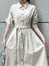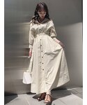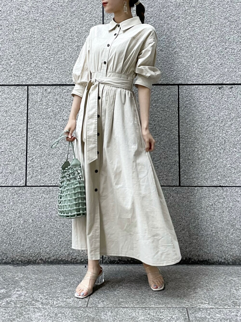 dazzlinで春に大人気だったワンピースが夏素材になって登場しました♡麻を用いた涼しい素材で身体に張り付く感じもなく、じめじめした梅雨シーズンにも大活躍の予感です!シャツのボタンは2個ほど開けて抜き襟で着ることも出来ますし、写真のようにあえて全部留めるのも可愛いです♪シャツワンピースといえばかっちりとしたイメージがありますが、カジュアルな麻素材なので全部留めても程よく抜け感が出るので、最近の私はこの着方が気分です◎ウエストのリボンは取り外せるのでお手持ちのベルトでアレンジするのもオススメです!私は骨格ウェーブなので、リボンはやや強めに結んで腰の位置を高く見えるように着用しています!可愛くリボン結びも良いですが、片結びを2回する結び方は一気にこなれ感が出るので是非やってみて下さい♡ワンピースとサンダルを色素の薄いカラーで揃えたので、グリーンのデザインバッグで差し色を加えました♡こちらのバッグは小さく見えますが、ポーチやお財布、除菌アイテムなど見た目以上に中身がしっかり入ります◎