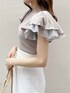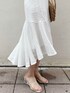 一目惚れトップスを主役にした大人フェミニンコーデ。【トップス】毎日店頭でもお問い合わせを沢山いただいています!たっぷりフリルが目を引くデザイントップスです。フリルにはオーガンジーが重なっていて、内側までふんわりと広がるので身体の幅を狭く見せてくれる効果がございます❤︎甘めなデザインなので、見頃はリブカットソーで少しカジュアルダウン。フェミニンコーデで終わらないところが嬉しいですね◎私はスカートで合わせましたが、ジャンスカやデニムとのコーディネートもきまります◯【スカート】1人1枚は持っているのではないか?ぐらい定番化しつつマーメイドスカート。今回dazzlinから出たものは斜めにカットされた裾で差別化が出来ます◎脚を長く見せてくれる効果があるのも嬉しいポイントです❤︎伸縮性のあるカットレースなので動きやすかったです!【小物】サンダルは店頭でも毎日履いている歩きやすさ◎ネイルをパキッとしたカラーにするとクリアの良さがより一層際立ち、コーデのポイントになります♡バッグはポーチ、財布、除菌アイテムなど…見た目に反してしっかり入ります◎柔らかい雑材で持つだけで一気に夏らしくなります!