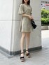 とにかくスタイルアップしたい。そんな方に着ていただきたいコーディネートです❤︎【ワンピース】ウエストの切り替えがないのに細く見える、魔法のような美シルエット◎ウエストを自然と綺麗に絞ってくれるので、店頭でご試着されたお客様も驚いた表情で試着室から出てこられます♪3色展開で、それぞれ違うカラーのステッチが施されています!ベージュは1番ナチュラルな配色で、ミニ丈を着たいけど子供っぽくなりたくない、女性のそんな願いを叶えてくれますよ♡脚が出ている分、お袖はボリュームスリーブで露出は控えめに…この絶妙なバランスも私の好きポイントです♡【サンダル】dazzlinでリピーター様も多い定番サンダル。これを履くと確実に脚が盛れます!盛れるのに軽くてフィットしてくれるので、長時間歩く日でも頼りになるサンダルです◎私も実際にdazzlinのコルクヒールサンダルを履いてテーマパークへ行きましたが、1日楽しむことが出来ました♡是非一度お試しください☺︎