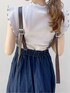 今すぐ着られる秋物を使ったコーディネート♡【ワンピース】定番化しつつあるジャンスカは深めのVラインで他にはないデザインに進化しました♡通常のジャンスカと違ってバストが圧迫されないので、ストレスフリーで着心地がらくちんです!また、ウエストは後ろがゴムになっていますが比較的小さめなフリーサイズで小柄なお客様にもおすすめしたいサイズ感でした◎ステッチのおかげで1番細く見せたいウエストを引き締めてくれて、振り返ると合皮のストラップが見えて高級感をプラス。3段階で長さ調整をしていただけるので、お好みの丈感で着てみてください♪私は160cm、2つめの長さで着ましたが足首がすっきり見える丈感になりました◎冬はタートルニットを入れたり、インナー次第で長い期間様々なイメージで着ていただける優秀アイテムです!【トップス】店頭でも再入荷してすぐ完売、を繰り返している人気トップス。人気の秘訣は何より合わせやすさ。どんなボトムスにもマッチしてくれるのに、細かく施されたメローがコーデのアクセントになってくれます◎ややしっかりとした生地感で安っぽく見えないところも私は好きです♡フレンチスリーブなので、ノースリーブに苦手意識のある方でも挑戦しやすくなっています♪