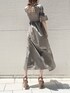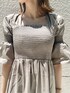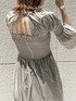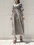 らくちんなのに着痩せが出来る優秀ワンピース。ぴたっ、ふわっのバランスがとても良くて、ナチュラルなフィット&フレアシルエットが特徴です。バスト部分は360度シャーリングで締め付けこそないものの女性らしさを出してくれます◎ウエストから下のフレアシルエットですが、パリッと張りのある素材なので広がりすぎず自然に落ち感を出してくれました♡二の腕にもシャーリングが施されていて、気になるところはこれでもか!というぐらい締めてくれて、更にスクエアネックで首周りもすっきり見せてくれます◎秋カラーですが、振り返ると背中がちらっと見える肌見せでまだまだ夏を楽しめます♪私はズボラな性格なので、ファスナーやボタンなどが無くて、かぶるだけで着られるところも好きポイントだな、と思いました♡(笑)