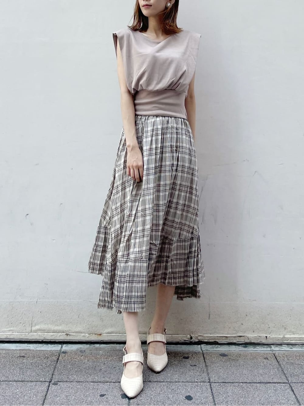 mai(dazzlin)のスカート「チェックダブルプリーツスカート」を使ったコーディネート