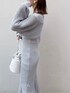 デートにぴったり♡女の子らしさ、女性らしさどちらも兼ね備えたニットワンピース○ノースリーブワンピースとショート丈のボレロがセットになっています!ボレロは前後ろどちらでも着用可能なので、シンプルにしたい日はリボンを後ろに持っていくのもオススメです◎このニットワンピースは、マーメイドシルエットですがウエストがしっかりマークされているので、マーメイドが苦手な骨格ウェーブさんでも可愛く着ることが可能です❤︎着てみるとやや重めの肉厚感あるニットで、ボディラインやショーツラインを拾いにくくなっています♪ブルーグレーのような絶妙なくすみカラーでパーソナルカラー関係なく着やすいカラーになっていますよ◎袖は少し長めになっていて、更にたっぷりボリュームがあざと可愛いので、店頭でカップルのお客様が来られたときの男性受けもかない良いです♡♡