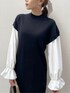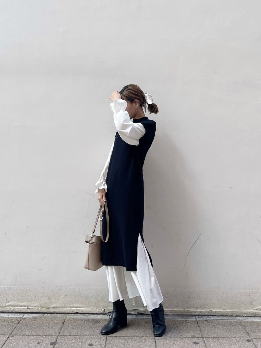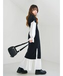 【Lunangelina byちぃぽぽ×dazzlin】吉木千沙都さんがディレクションを務めるランジェリーブランド『Lunangelina』とのコラボアイテム。ニットワンピースはカジュアルさのないもちもちした素材で、大人っぽく、上品な洗練されたイメージに◯袖のシャツはドッキングされていますが、裾のスカートはウエストから下のみのペチコートなので取り外すことが可能です!なので、中にレースやチュールのスカートでフェミニンにしたり、デニムパンツを合わせてカジュアルダウンさせたり、自由自在に着回していただけます。袖のシャツは透け感がないので、寒い時期もインナーで着込むことが可能です◎また、細身シルエットなので骨格ウェーブの私が着ても綺麗なIラインが出せました!実はベルトも付属になっているので、どうしてもウエストマークがないと苦手…という方は是非付属のベルトを活用して頂けたらと思います♪今回はベルトを使わないスタイリングにしたので、リボンのヘアアクセサリーで軽くまとめて目線を上に持っていきました♡