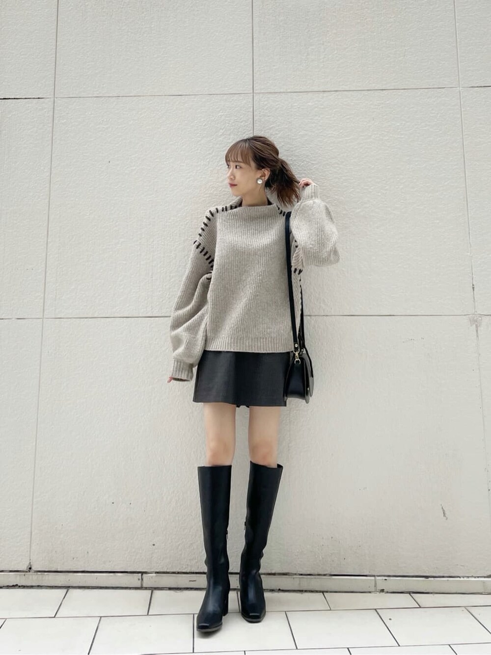 最近のマイブームのゆるニット×ミニ丈コーデです♡私服でもよくしている私の定番スタイリング。ニットは一見カジュアル見えするデザインですが、ざっくりとした程よいサイズ感とシルエットで女の子らしさも◎肩幅など引き締めたい部分にステッチが施されているので、華奢見え効果もございます♪首元はボトルネックで、タートルやハイネックに比べて締め付け感もないので着やすくなっています♡私はミニ丈で合わせるのが好きですが、ロングスカートやデニムなど幅広いボトムスと合わせられる優秀ニットです♡【ボトムス】私もリアルバイしたスカパン。子供っぽく見えない落ち着いたチェックで、大人女子に試していただきたいミニ丈です◎前から見るとスカートですがパンツになっているので、デイリーに使えるミニ丈なのも嬉しいポイントです♡160cmでSサイズを着用しているので短く見えてしまいますが、SM展開なので160cm以上の方はMサイズでも良いかな、と思います♪