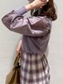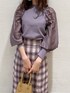 春らしいカラーを使ったコーディネート。♡冬から春への切り替わり、カラーやシアー素材などがいつもに増して可愛く見えますよね♡私が今季1番気になっているパープルでコーデを組んでみました!【トップス】異素材使いがお洒落で可愛いトップス。素材の切り替わり部分はフリルが施されていて、dazzlinらしさも詰まっています♡透けすぎないシアー感で、本格的な春が来る前から先取りで着れちゃいます◎私はボリューム感をしっかり出したかったので腕まくりで着用していますが、長袖としてコンパクトに着ることも可能です◯スカートだけでなくパンツやデニム、ジャンスカのインナーにも着回していただけます♡【スカート】まだまだトレンド真っ只中のマーメイドスカート。ベーシックなものはこの秋冬で揃えられたお客様も多いかと思います。こちらのマーメイドスカートは大きめチェックがコーディネートのポイントになってくれて、ニット、ブラウス、Tシャツ、幅広く合わせられます◎Sサイズから展開もあり、私はSサイズでピッタリでした♡春を超えて、夏はTシャツにスニーカー合わせなどでカジュアルに着るのも可愛いですよ♪