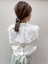 フェミニン派でも着られるきれいめパンツコーデ。【カーディガン】季節の変わり目に持っていると損のないカーディガンは、dazzlinらしいレースアップデザインで可愛らしく♡ぴたっとしすぎないサイズ感でワンピースにさらっと羽織っても可愛いです◯今回は1番上のボタンを閉めて、トップス風に着てみました!【ブラウス】リアルバイのアイテムです♡こちらのブラウス、好きすぎて3色買ってしまいました(笑)オススメポイントは沢山ございますが、まずは襟が取り外せるところです。ボタンなどもついていないので、簡単に印象を変えていただけます!オフホワイトのみ襟がレースになっていて、顔写りをぱっと明るくしてくれます。上半身にボリュームが来て、全体バランスが綺麗に見えるところも骨格ウェーブの私が気に入ったポイントです♡【パンツ】履き心地が良すぎて店頭でも愛用しています。丈も長すぎず、店頭では150cm前半の小柄なお客様からも好評でした◎フェミニン派の方からはパンツはどうしてもカジュアルなイメージがありますが、こちらのワイドパンツはロングスカートのような感覚で着ていただけて、ハイウエストなので骨格ウェーブさんでも着られるパンツになっています☆【パンプス】dazzlin定番のレディパンプスが今年も登場♡今回、初めてツイードが加わりました!低めのヒールで歩きやすく、クッションもしっかり効いています◎私は普段22.5cm〜23.0cmでSサイズを履いており、こちらもSサイズでピッタリでした♡