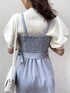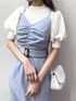 着回せるワンピース、" ジャンスカ " は着るものに悩む季節の変わり目のマストハブアイテム。今回はジャンスカをメインに、ホワイト×ブルーの爽やかコーディネートを組んでみました♡ 【ワンピース】マーメイドシルエットでトレンドを取り入れつつも、良い意味で目立つデザインを入れず長く使っていただける1枚。dazzlinのマーメイドシルエットはラインが出過ぎないので、骨盤が出るシルエットが苦手な骨格ウェーブさんも挑戦しやすくなっています◎また、トップス部分にはギャザーが施されているので、バストアップ効果も狙えます♪ウエストの位置も高く、スタイルアップが出来るポイントがぎゅっと詰まったジャンスカになっています♡後ろはシャーリングで苦しさも無く、肩紐はアジャスターで長さ調整が可能なので、小柄な方もスレンダーな方も楽しんでいただけます♡ 【トップス】 スカーフが付属になっています◯今回はジャンスカのフロントギャザーを活かしたかったので、あえて取り外して着てみました♪ややシャリ感のある素材で暑さを感じにくく、気温が上がってきた今の時期にピッタリです◎シャリ感があるおかげでシワになりにくく、出勤コーデにもオススメです。よく見るとランダムな太さのリブニットで、細いリブに比べてボディラインが強調されにくいところが私的に良いな、と感じたポイントです♡ 【シューズ】私もリアルバイ済みのパンプス❤︎スクエアトゥなので大人っぽさの中にカジュアルさもあり、キレイめからフェミニン、カジュアルまで幅広いテイストにマッチしてくれる優秀パンプスです。私は普段22.5〜23.0cmを履くので、Mサイズで少し余裕がありました。ですが、ストラップを縮めるとクロスストラップで固定されて問題なく履けたので、Mサイズを購入しました♡