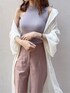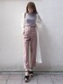 フェミニン派でも楽しめるパンツコーデ。カジュアルなアイテムは甘めカラーを選ぶのがマイルール◯【トップス】サイドが大胆に開いたトップスはdazzlinでしか買えないトレンドアイテム。首が詰まっているので、上半身の肌見せが苦手な骨格ウェーブさんでも楽しめるディテールです◎【パンツ】リアルバイ済みのお気に入りアイテム。私はこのシルエットのパンツを履くと、骨盤が目立ってしまうことに抵抗があるのですが、こちらのパンツは細身シルエットに加えてハイウエストなのでスッキリ着ることが出来ました◎Sサイズを着用しているのですが、私の体型でウエストはほぼピッタリで、ベルト無しでも着用出来ました♡【シャツ】夏のマストハブアイテムと言っても過言ではないシアーシャツ。ベーシックなシアーシャツは既に持っている、なんて方にも是非オススメしたいです◯肌見せコーデやパンツスタイルを楽しみたいけど体型カバーもしたい、そんな願いを叶えてくれる1枚です♪【サンダル】dazzlin定番のコルクヒールサンダルが今年も登場しました♡私も実際にライブやテーマパークに履いて行ったことがあるのですが、本当に長時間歩けます!!もちろん慣らす時間は必要ですが、沢山歩くけど盛りたい日は絶対に選んでしまいます♡私は22.5〜23.0cmで毎年Sサイズを購入しています!