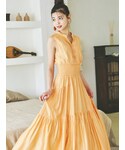ビタミンカラー オレンジが主役の夏コーデ。【ワンピース】初回入荷時に一瞬で完売してしまった人気アイテム。ウエストはしっかりめのシャーリングでマーク出来るので、骨格問わずスタイルアップが叶います♪ブラウジングすることも可能ですが、私は身長が160cmあるので、上げすぎずナチュラルに着用しました◯キーネックやくるみボタンなどのディテールで、カラーものも子供っぽくならずに着ていただけます♡【シャツ】とろみたっぷりの質感が高級感漂うシアーシャツ。カーディガンで合わすのもオススメですが、シアーシャツをたすき掛けしたスタイリングは一気にこなれ感が出ます◎私も夏はシアーシャツを羽織る事が多いのですが、骨格ウェーブ特有の腰回りのコンプレックスを隠してくれるところも重宝しているポイントです♡【サンダル】dazzlin定番のクリアサンダル。私は22.5〜23.0cmでSサイズを毎年購入しています♡