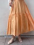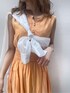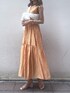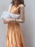 ビタミンカラー オレンジが主役の夏コーデ。【ワンピース】初回入荷時に一瞬で完売してしまった人気アイテム。ウエストはしっかりめのシャーリングでマーク出来るので、骨格問わずスタイルアップが叶います♪ブラウジングすることも可能ですが、私は身長が160cmあるので、上げすぎずナチュラルに着用しました◯キーネックやくるみボタンなどのディテールで、カラーものも子供っぽくならずに着ていただけます♡【シャツ】とろみたっぷりの質感が高級感漂うシアーシャツ。カーディガンで合わすのもオススメですが、シアーシャツをたすき掛けしたスタイリングは一気にこなれ感が出ます◎私も夏はシアーシャツを羽織る事が多いのですが、骨格ウェーブ特有の腰回りのコンプレックスを隠してくれるところも重宝しているポイントです♡【サンダル】dazzlin定番のクリアサンダル。私は22.5〜23.0cmでSサイズを毎年購入しています♡