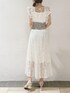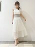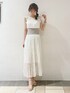 オケージョン対応も◯高級感あるきれいめワンピースが主役のstyling。【ワンピース】オケージョン対応も出来るワンピースは1枚あるとふとした時に便利です。こちらのワンピースは高級感のあるプリーツ加工で歩くだけで綺麗な動きが出てくれます。また、生地全体にラメが入っているので、煌めくレースにときめいてしまいます。♡ウエストはカットソーなので、ボディラインを拾いすぎず柔らかい印象を与えてくれます◯着心地の良さもカットソーならではの特徴です。骨格ウェーブの私は、このタイプのワンピースを着ると胴が長く見えることが懸念点でしたが、こちらはカットソーの面積が広くないので、ウエストの細いところだけくびれてくれます!着方の工夫要らずで可愛く着られるワンピースです◎【サンダル】dazzlin定番のクリアサンダルは安定感抜群で店頭毎日履いていても疲れ知らずの1足。私は普段22.5〜23.0cmでこちらはSサイズを購入しています!