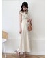 まだまだトレンドの大きな襟がポイントの【ワンピース】。小顔効果があり、更に後ろのレースアップをきつく結ぶと好きなサイズ感まで締めることが出来るので、スタイルアップが叶います◯。私はウエストのサイズ感で困ることが多いのですが、きゅっと結ぶとジャストサイズに調節することが出来ました!ノースリーブを着るとどうしても脇辺りの空洞が気になりますが、こちらのワンピースは脇が見えないようになっているので、ノースリーブに懸念点のある方でも挑戦しやすくなっています♪【サンダル】dazzlin定番のコルクヒールサンダル。ヒールの高さの割に軽くて脚にフィットするので、ライブ用に買われるお客様も多いです♡私は普段22.5〜23.0cmを履いていて、こちらのサンダルはSサイズでピッタリでした◎