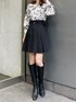 大人女子のミニ丈styling。 《ブラウス》 胸元、袖口に肌見せポイントがあり、さりげなく女性らしさを演出◯ IVYを着用しましたが、透け感も気になりにくかったです。 襟は付け外し可能です。軽くて柔らかい素材なので、アウターに響かないところもお気に入りです♡ 《スカート》 インナーパンツ付きです◯ こちらはベーシックなミニスカートよりも少し長めの丈感なので 私含め160cm以上の高身長さんでも挑戦しやすいです♡ 《ロングブーツ》 22.5〜23.0cm、足幅狭め、厚み薄めでMサイズ着用です。