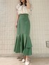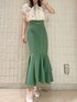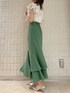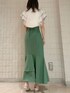 Iラインシルエットでスタイルアップコーデ。 《トップス》 甘めなディティールですが、 ブラックのパイピングがコーデを引き締めてくれます◎ 肩からウエスト辺りまで流れるようなフリルで、 二の腕がスッキリ見えるのも嬉しいポイント♡ 《スカート》 160cm、Sサイズ着用でくるぶしがしっかり出る丈感でした! ダブルスリットから脚がチラッと覗くので ぱきっとカラーも肌馴染みが良く着やすいです♡ 私はSサイズでウエストぴったりでした◎ 《シューズ》 22.5〜23.0cm、足幅は狭め、甲は低めでMサイズを購入済みです○
