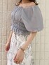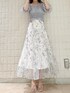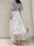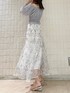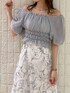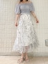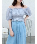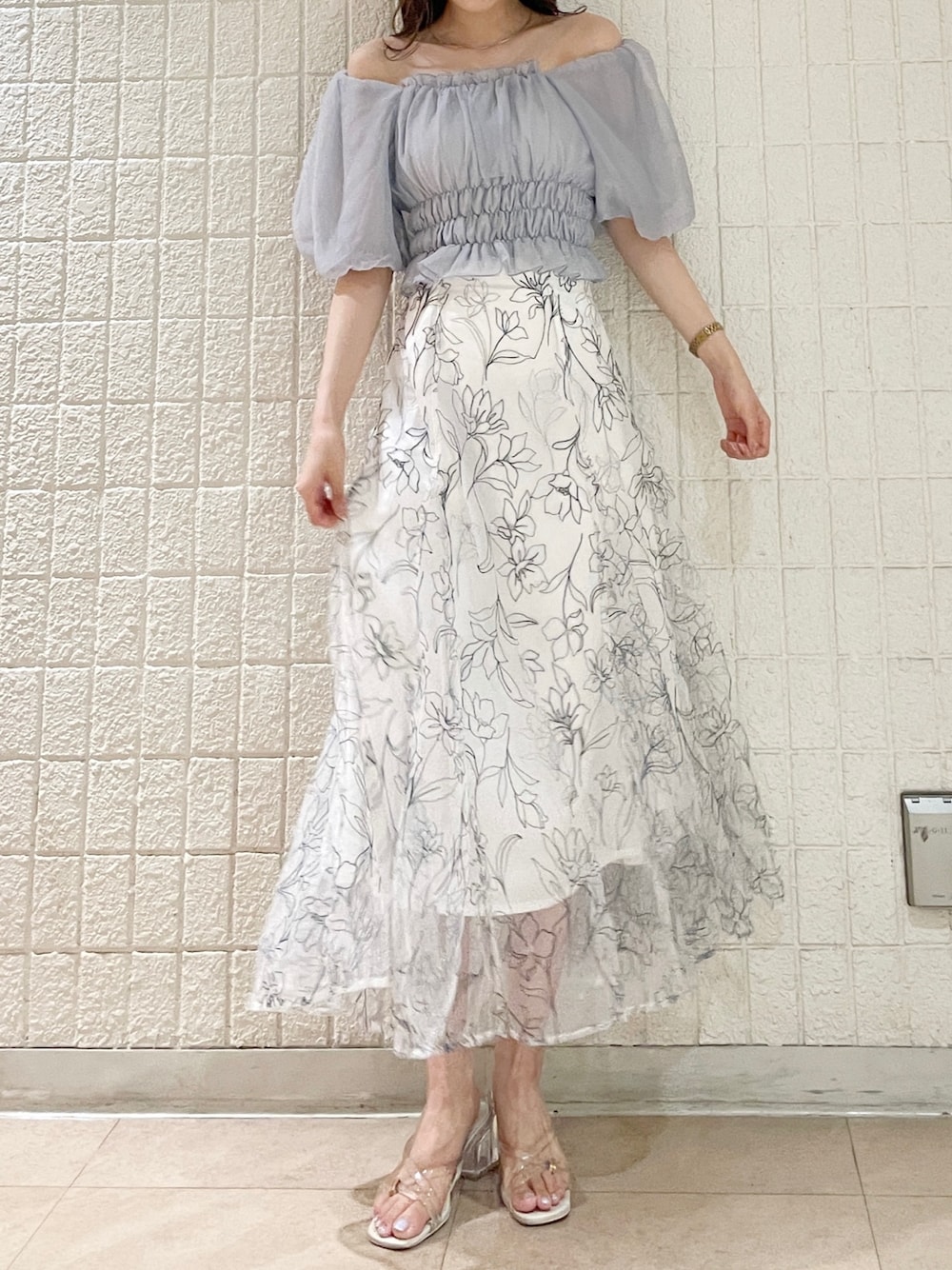 透明感たっぷり♡涼しげ寒色コーデ。 《トップス》 裏地にラメが施されているので、さりげない艶感で高級感も◎ オフショルは今年マストハブアイテム。 肌見せの分量が多い分、バルーンスリーブで隠したい二の腕はカバーしてくれます。 《スカート》 刺繍が一部グリッターになっており、コーデを高見えさせてくれます。 繊細なチュールで広がりすぎず、デイリー使いしやすいシルエットでした◎ 《サンダル》 22.5〜23.0cm、足幅狭め、甲低めでMサイズを購入し着用しております。