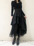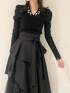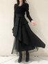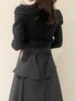 クリスマス着たい、オールブラックコーデ。 《ニット》 深すぎないVネックに 大きさが異なる装飾で華やかな印象に◯ もちっとしたリブニットで ボディラインを綺麗に見せてくれます。 《スカート》 アシンメトリーなデザインで 歩くだけで動きが出るスカート。 私は160cmの身長なのでS・Mどちらも着られますが ブーツと合わせて丁度良い丈感が好きなので、Sサイズを着用しています♡ 《ブーツ》 22.5〜23.0cm、足幅狭め、厚み薄めでMサイズ着用です。
