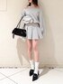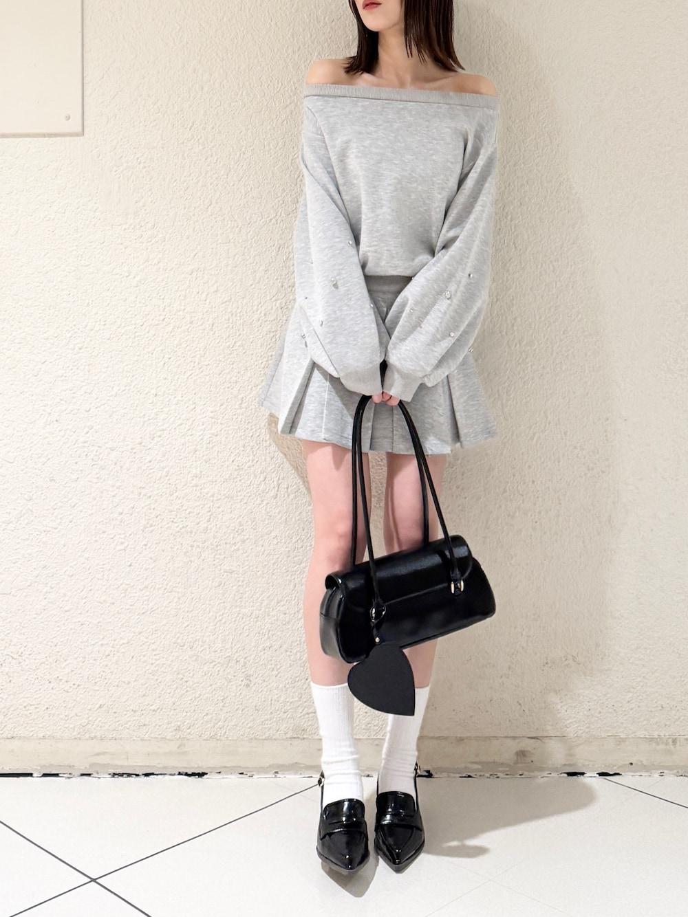 ◾️トップス 袖の内側がチュールになっているので ふわっと可愛いフォルムをずっとキープできます。 もちっとしたスウェットで着心地も抜群○ ◾️スカート インナーパンツ付きでミニでも安心○ 伸縮性が効いていて、スウェットの良さを最大限に活かしながらも 太めのボックスプリーツで大人っぽく綺麗めに着られます。 ◾️シューズ 普段23〜23.5cmでMサイズ着用です。