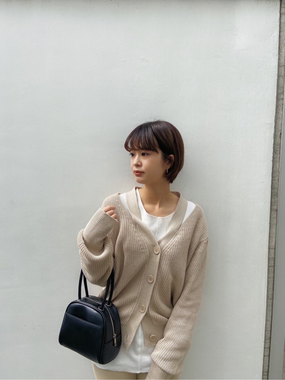 アイボリーやベージュの柔らかい色味のワントーンコーデで春仕様に♡ニットカーデはボタンを閉めてニットとしても、ボタンを開けて羽織りものとしても着れるのが魅力!ゆったりしたニットにピタッとしたフレアパンツを合わせる事でメリハリもUP◎フレアパンツはストレッチが効いているので履きやすく、縦ラインのリブが足を細く見せてくれます!足元は厚底のサンダルを合わせる事で、足を長く見せて美脚効果に◎