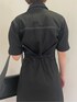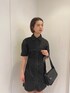 シャツデザインのミニワンピ!黒でまとめることで大人ぽく落ち着いたモードな印象に♡ウエストのタックデザインはくびれた印象にみせてくれるので細見え効果も抜群です!!着心地は後ろがゴムになっている為、ウエスト周りもストレッチが効いており柔らかくて着脱もしやすいです◎丈は短すぎず、164の私でも1枚で着用できました!