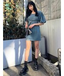 【フレアワンピで王道大人レディーに♡】大人の女性にもぜひ着て欲しいミニワンピース!首元のほどよいスクエア開きがデコルテを綺麗に見せてくれ、袖のボリュームで上品さをプラスしてくれます◎ウエストは高めの設定で脚長効果も抜群!ポリウレタンが入っていることで伸縮性も効いており着心地もかなり柔らかくなっています!フレアシルエットなので裾が広がっている事で太もも周りのカバーも◎ミントグリーンの落ち着いた色味にホワイトの小物合わせでミニワンピースでも上品な印象に仕上がります!合わせのサンダルは傾斜がなくぺたんこを履いているような履き心地!ストラップが足首を細く見せてくれます。