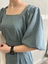 【フレアワンピで王道大人レディーに♡】大人の女性にもぜひ着て欲しいミニワンピース!首元のほどよいスクエア開きがデコルテを綺麗に見せてくれ、袖のボリュームで上品さをプラスしてくれます◎ウエストは高めの設定で脚長効果も抜群!ポリウレタンが入っていることで伸縮性も効いており着心地もかなり柔らかくなっています!フレアシルエットなので裾が広がっている事で太もも周りのカバーも◎ミントグリーンの落ち着いた色味にホワイトの小物合わせでミニワンピースでも上品な印象に仕上がります!合わせのサンダルは傾斜がなくぺたんこを履いているような履き心地!ストラップが足首を細く見せてくれます。