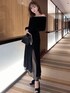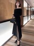 ざっくりスリットとオフショルダーデザインで女性らしさをたっぷり詰め込んだ1枚♪ ディナーやデートにもおすすめ❤︎