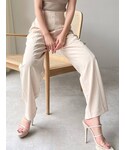 ハイウエストのストレートパンツは足長効果&着痩せ効果バツグン! ピタッとしたコンパクトなトップスと合わせてバランス◎