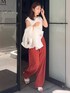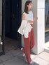 【リールのThursdayコーデ】 フレンチスリーブのおしゃれ見えタンクにカラーパンツ合わせでこなれ感◎