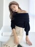 ボリューム感のあるオフショルデザインが肩を華奢に見せてくれる1着♪ 立体感のある編地にこだわったのも大きなポイント! ボトムにインスタイルでバランス◎