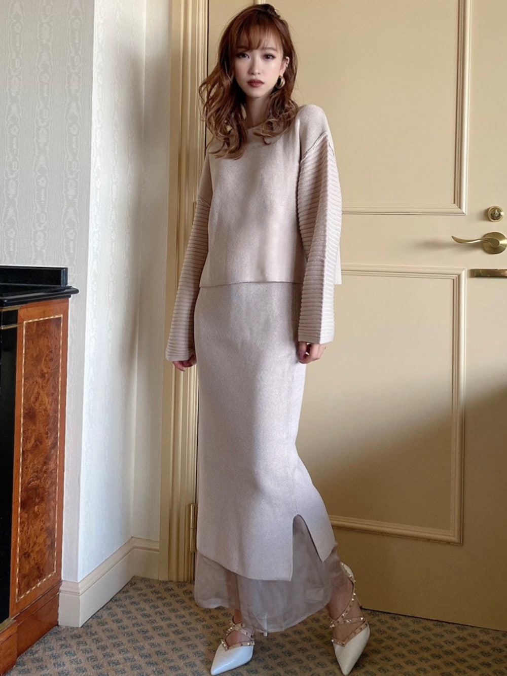 ERIKA(RESEXXY)のスカート「裾シアードッキングニットスカート【セットアップ着用可能】」を使ったコーディネート