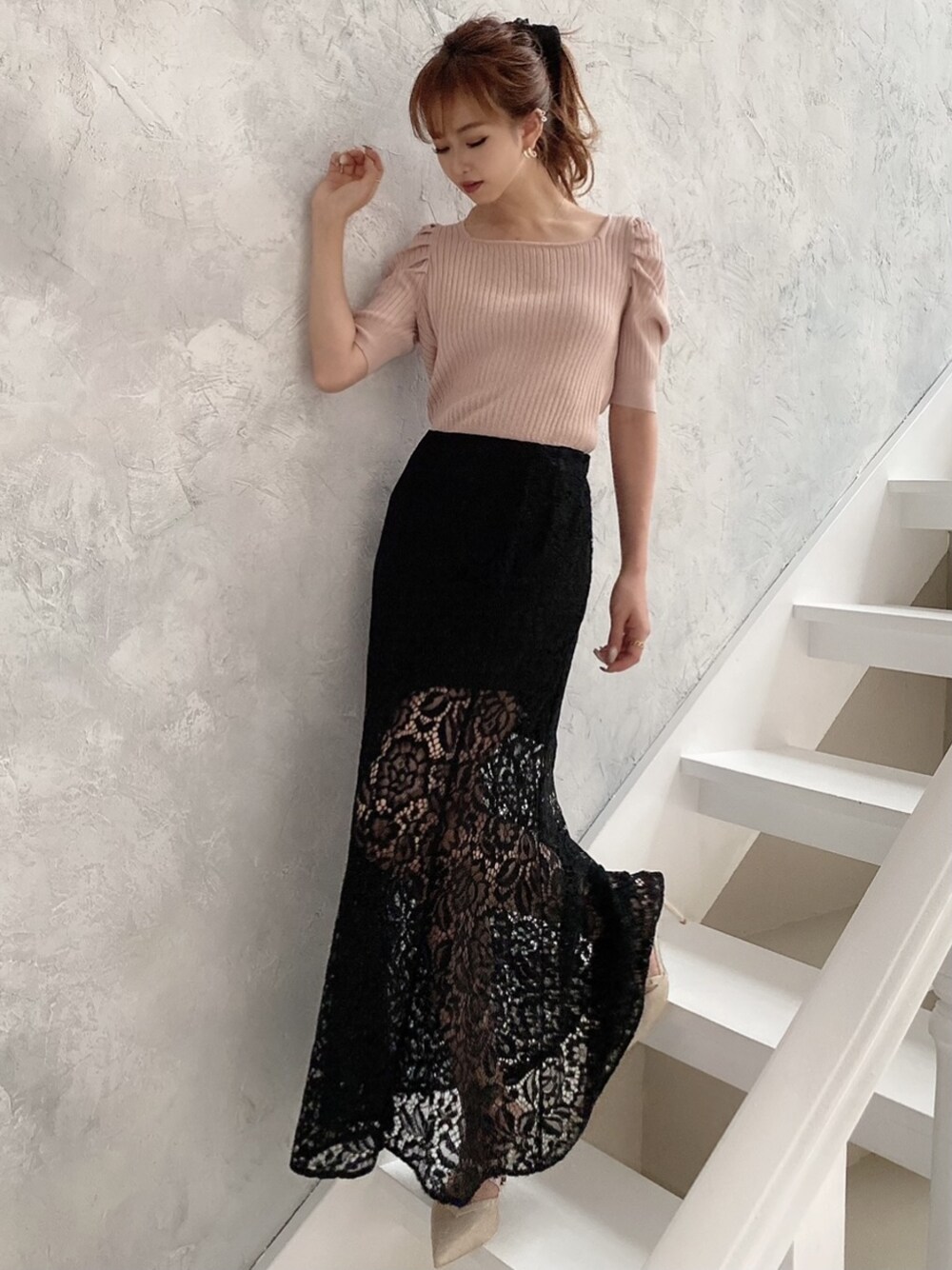 前回もお問合せ殺到のレースマーメイドスカート❤︎ バックリボントップスと合わせてちょっぴり甘めコーデ! デートにもおすすめ☺︎ ヒールで合わせるのが女っぽ可愛くて◎