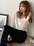 いつものレーストップスがパワーアップ♡ デコルテを綺麗に見せてくれるVネックラインから上品な透け感のあるレース切替がとってもかわいい♪ 甘くなりすぎないようにパンツと合わせても◎ デートにもおすすめ☺︎