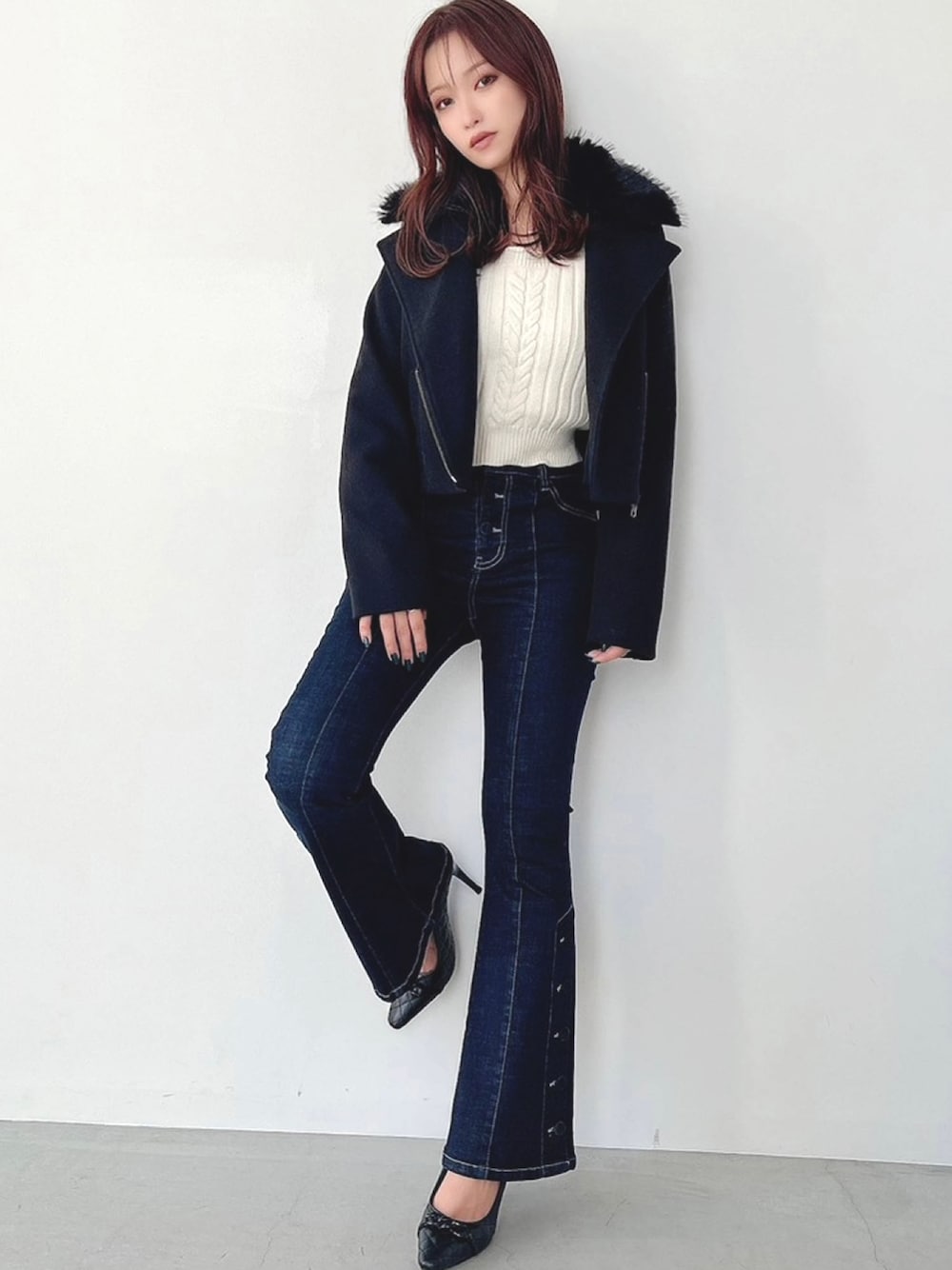 ERIKA(RESEXXY)のデニムパンツ「サイドボタンブーツカットデニム」を使ったコーディネート