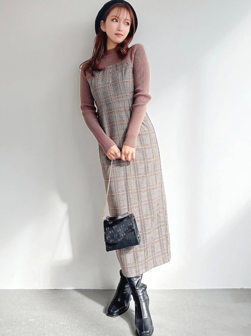 ERIKA(RESEXXY)のワンピース「ニットレイヤードチェックワンピース」を使ったコーディネート