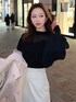 シアーとニットがドッキングされたトップス♡ 程よい透け感とボリュームのあるパフスリーブデザインが女性らしさUP♪