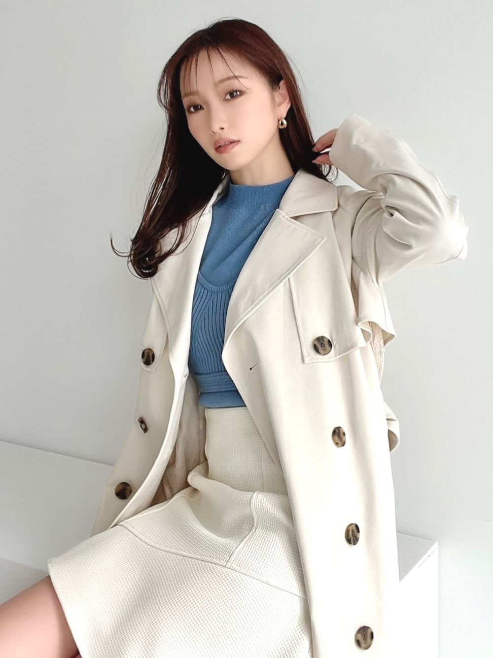 ミニボトムもロングアウターと合わせればさりげない足見せコーデで挑戦しやすく◎ コートはサイドがレースデザインになっていてオシャレ度UP♩