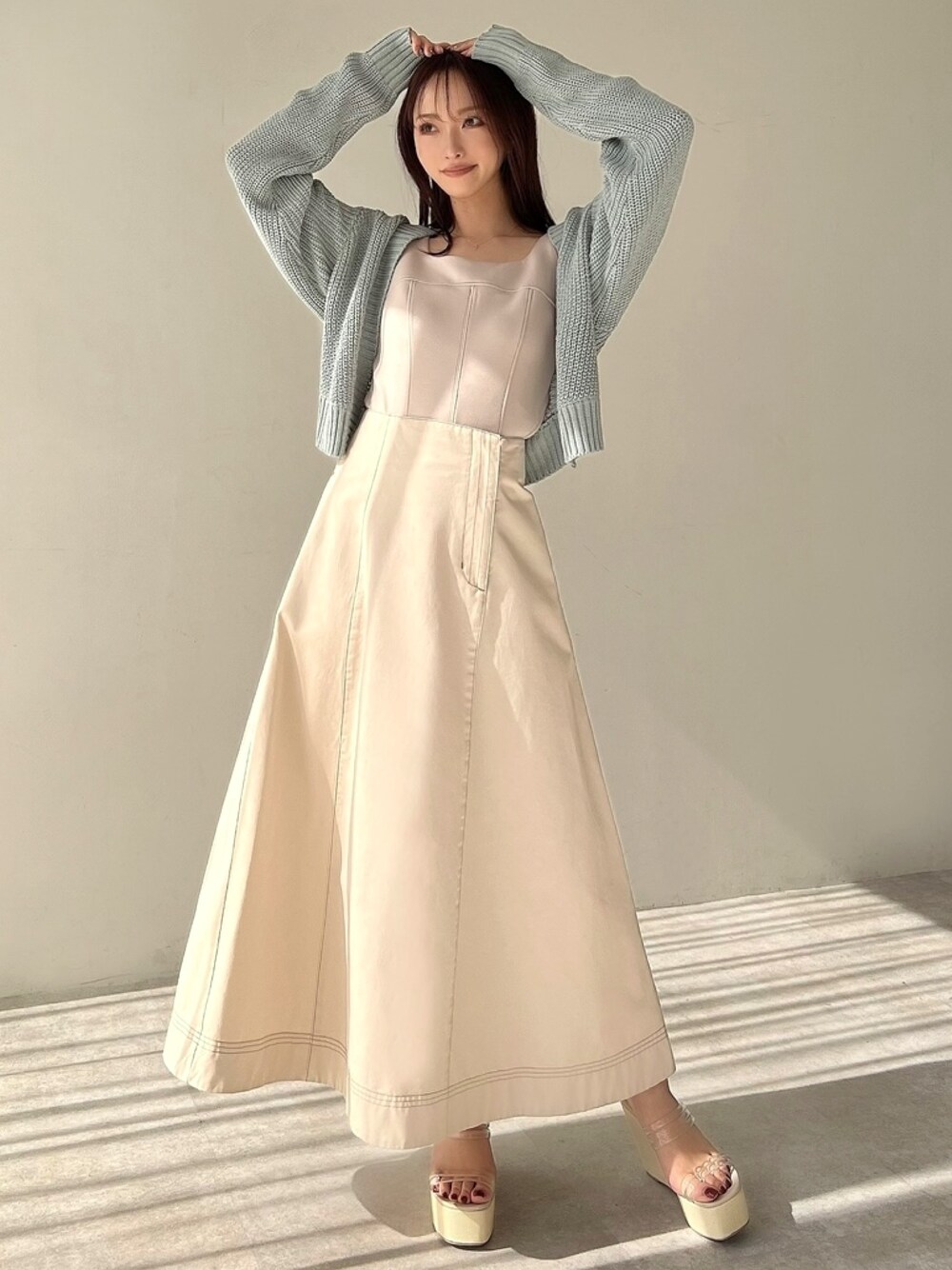 コンパクトなトップスにハイウエストスカート合わせでスタイルアップ効果◯ ルーズなカーディガンはこれからの季節にも大活躍♪