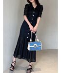 繊細で上品なワンピース♪ 肩の細かいギャザーにフロントの飾りボタン等デザインにこだわった1枚☺︎ シルエットもとっても綺麗♡