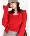 コンパクトなニットカーディガンとキャミソールのコンビアイテムはお問い合わせも多数! スタイルアップ効果バツグンなフレアスカートを合わせてバランス◎