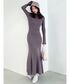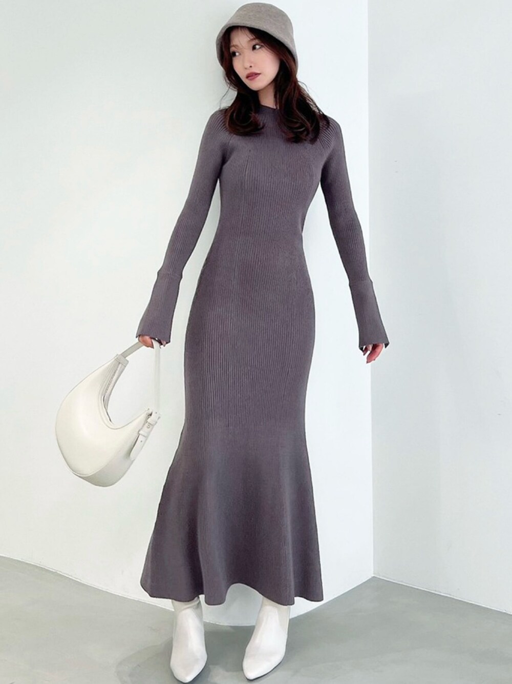 ボディラインが綺麗に見える切り替えでシルエットにこだわったニットワンピース♪ ハイネックかつマキシのマーメイドシルエットなので大人の印象に! 袖口にはスリットが入っていて抜け感◎ チャコールグレーはWEBでしか手に入らない限定カラー!
