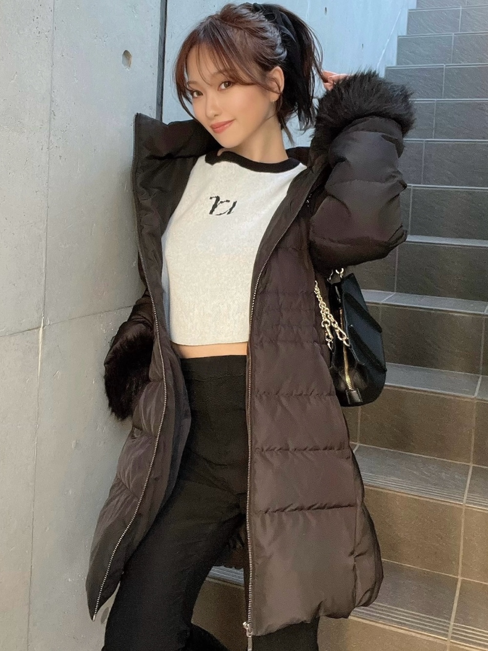 大人気のフード付きダウンコート♪ 本格的に寒くなってきたので今GETするべき♡ 前開けスタイルでもシルエットが綺麗なとってもおすすめアウター!