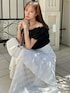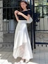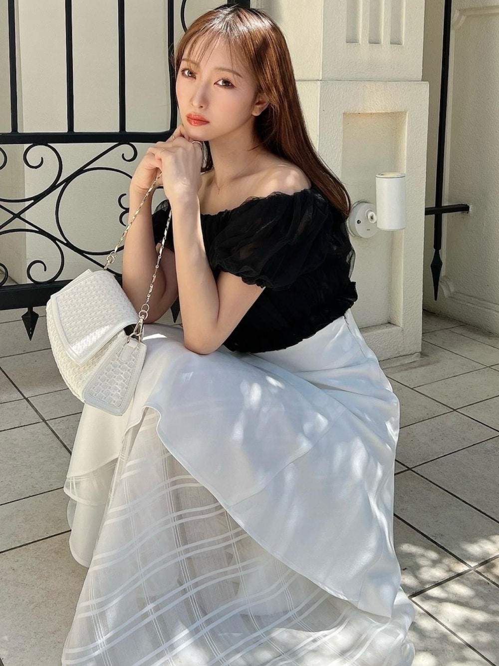 裾のシアー感が可愛いスカートにチュールトップス合わせで上品コーデ♪