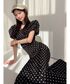 大人気のマーメイドワンピースが再登場! 今季もSM展開の2サイズでご用意! 程よい肌見せができるバックスタイルと フロントのクロスデザインが1枚で華やかなスタイルに♡ ウエストラインのホールド感と袖のバブルスリーブでメリハリのあるシルエットが際立ちスタイルアップ効果抜群のアイテム!