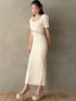 大人気ワンピースが今年も登場♪ バックはオープンデザインで肌見せができリボンが女性らしさUP! バスト下にカーブの切り替えを入れたことで1枚でスタイルアップが叶います☺︎